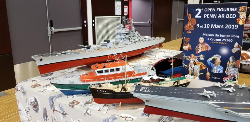 Autorisation accordée à nos Campistes par l’ami Yves de quitter le salon vers 15 h 45, assemblée générale du club à Crozon à 17 h 30. Juste avant notre départ, souhait émis par Michel: «je ramènerais bien le Bismarck chez moi pour réparations?». Avant tout chose, il nous faut l’accord de notre ami Yves. Permission accordée, avec en retour le dimanche le remplacement du Bismarck par le Jean Bart. Retour à Crozon donc avec un petit blocage des gilets jaunes.