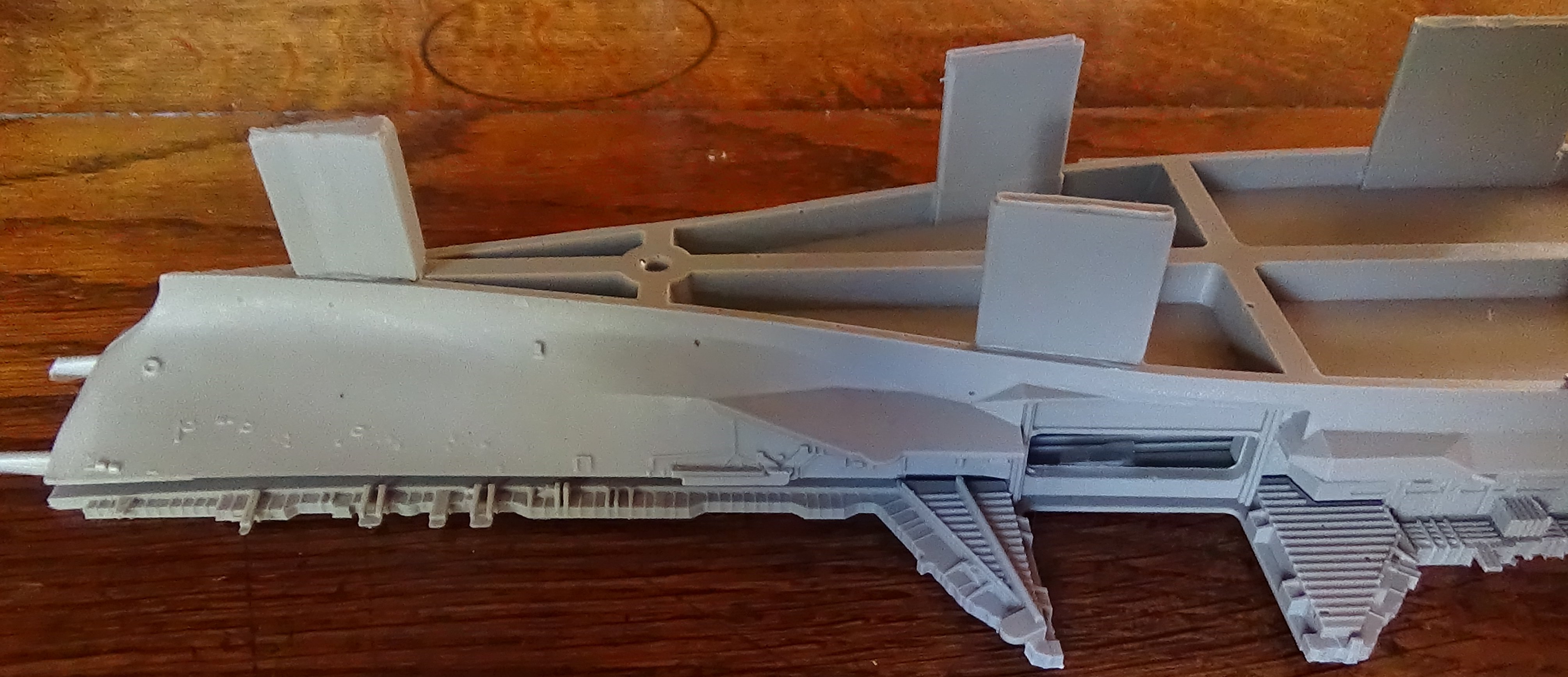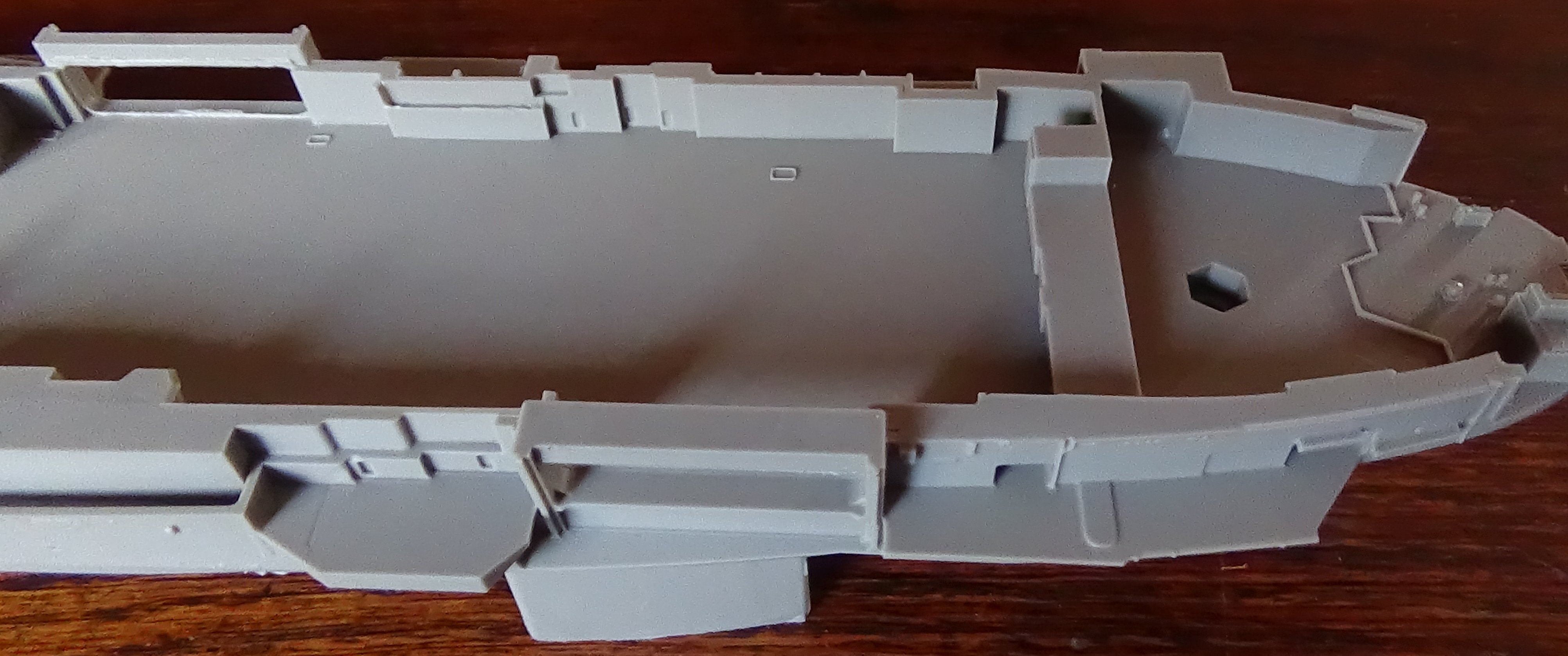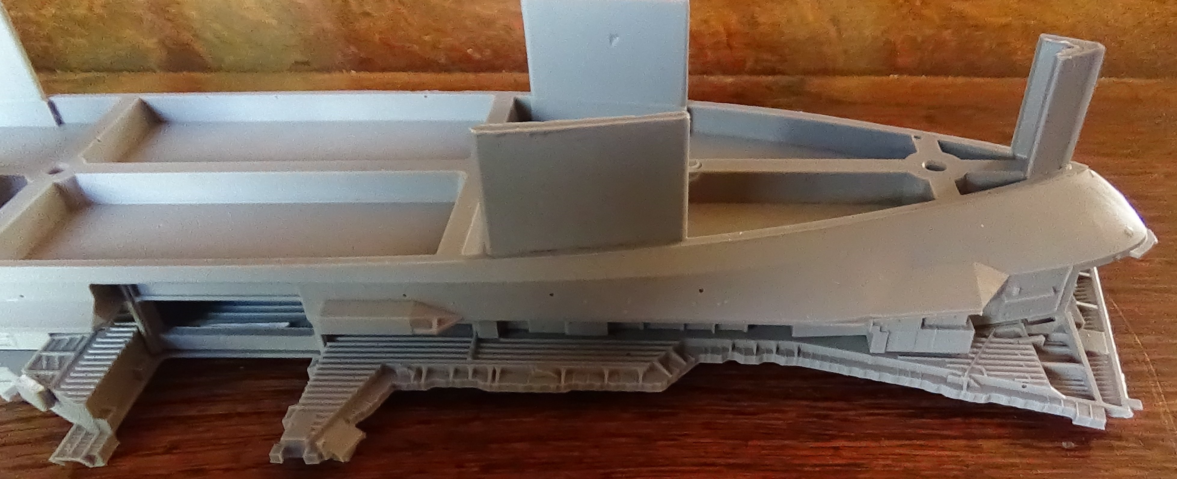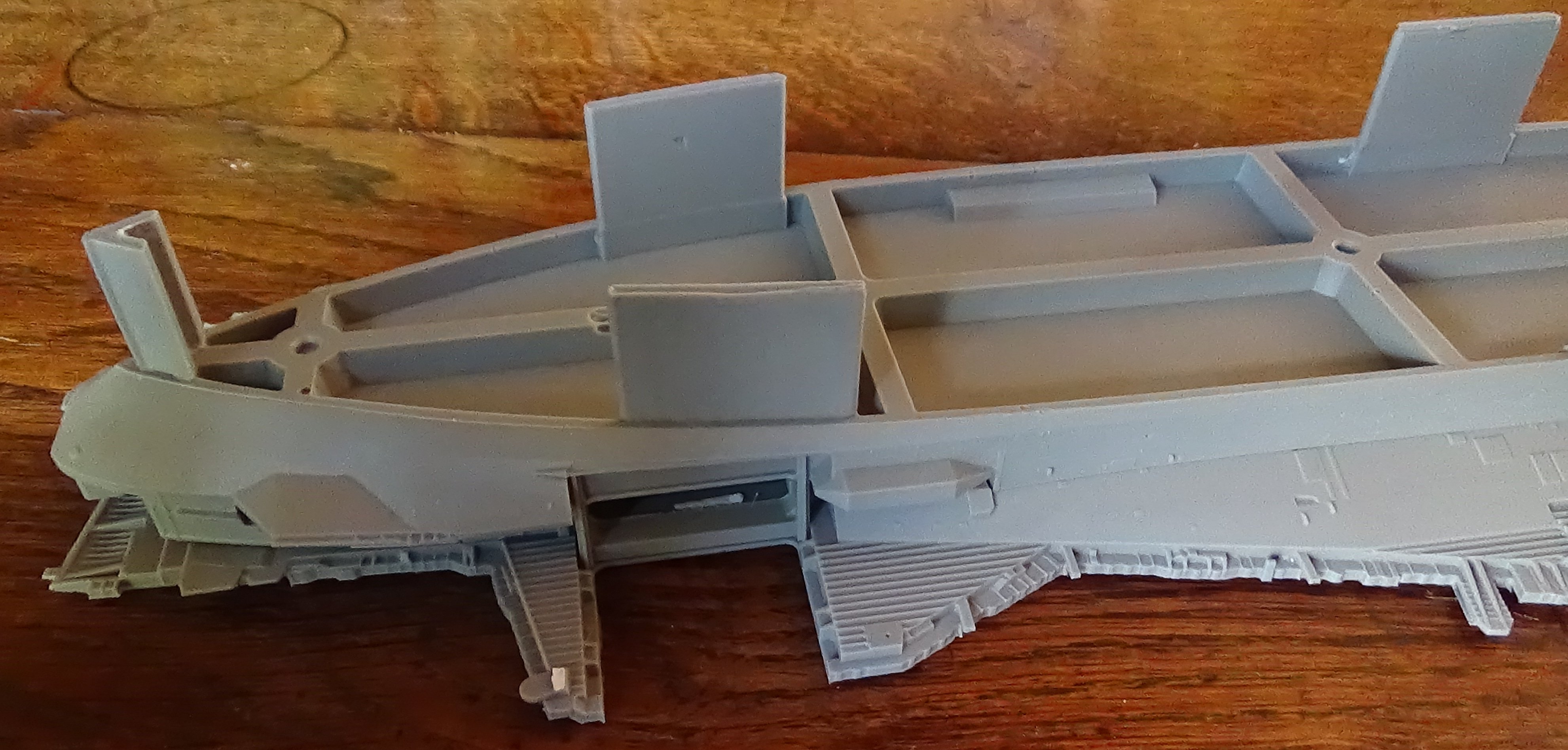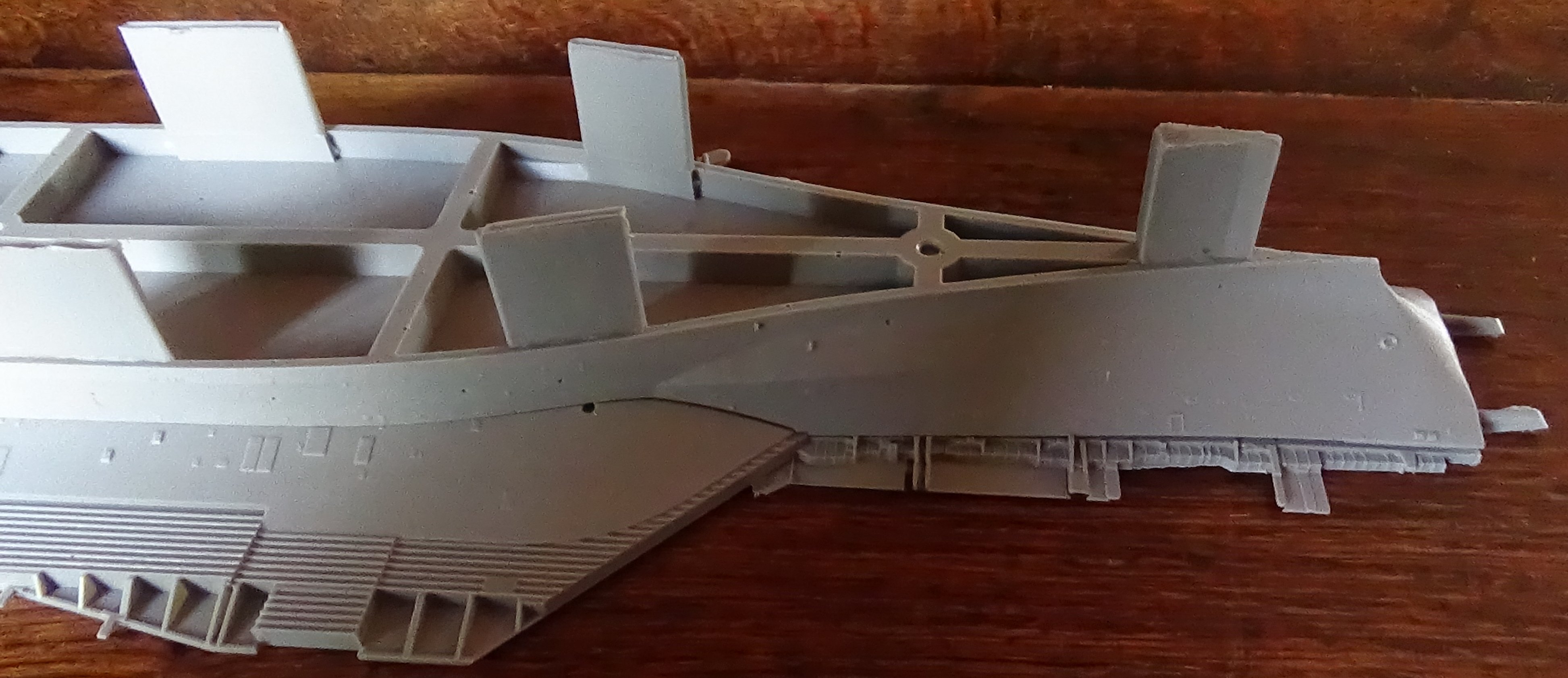 La coque, une très belle et grande pièce. Orange Hobby la fabrique dans le même moule et au même moment que le pont afin d’éviter des problèmes de retrait différents qui empêcheraient ensuite un emboitage parfait :