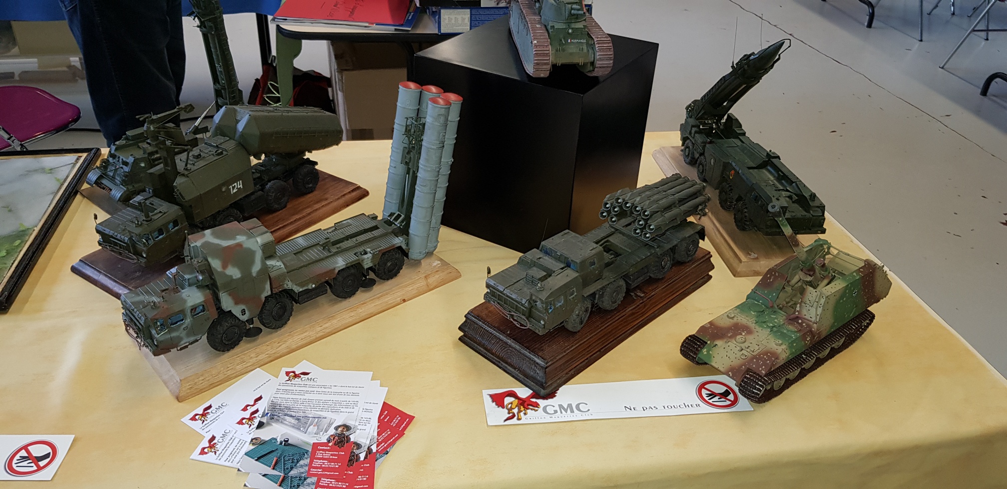 Dimanche après-midi des plus calmes. Très peu de visiteurs à ce salon qui pourtant avait tout ce qu’il fallait pour attirer le public. Il y a une chose qui joue en notre défaveur que ce soit pour le GMC ou tout autre club organisateur du même genre de salon : le renouvellement des pièces sur les différents stands. Vous entendez le public, lorsqu’il passe dans les allées, dire que telle ou telle pièce, il l’avait déjà vu à plusieurs reprises.