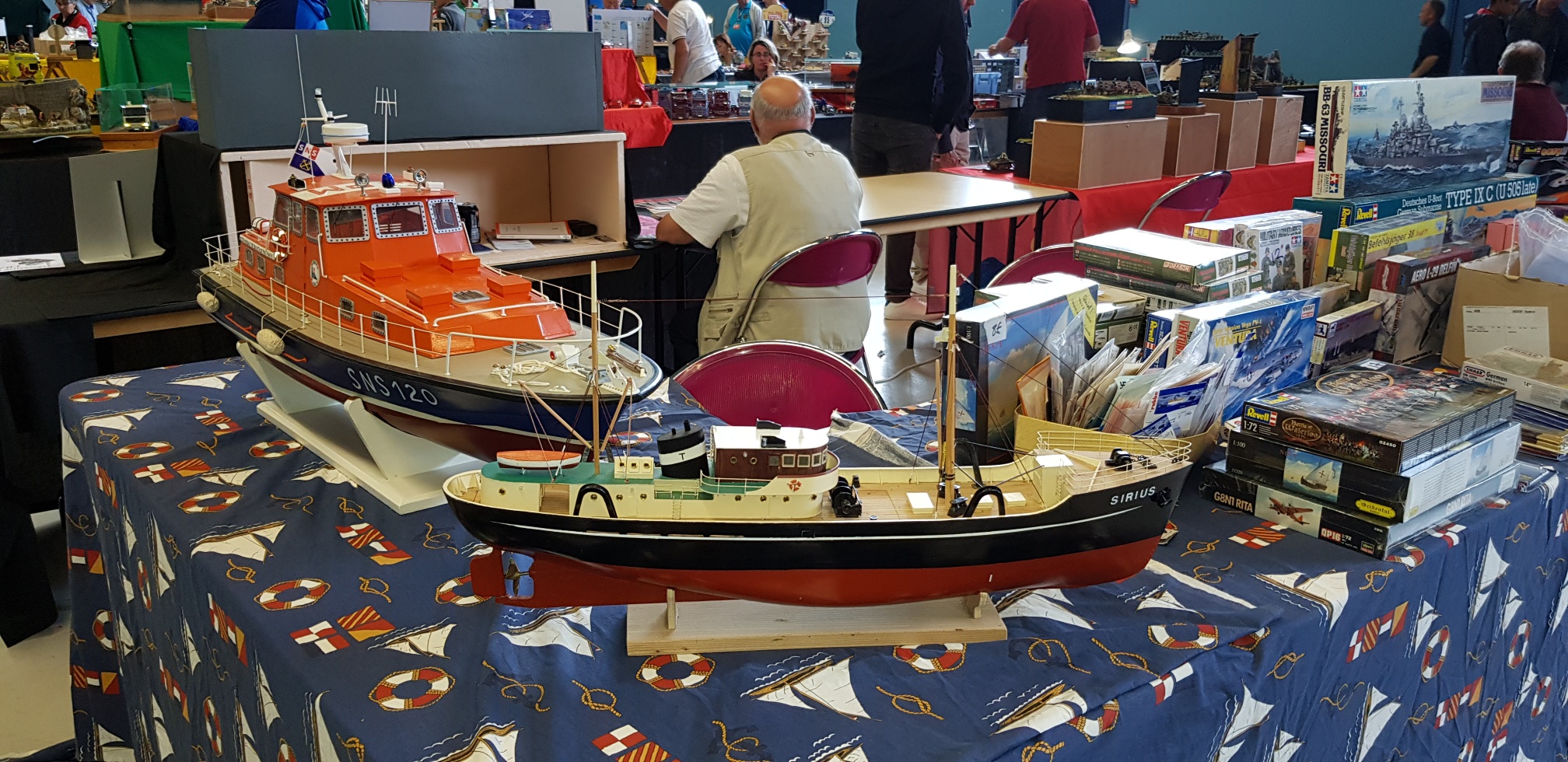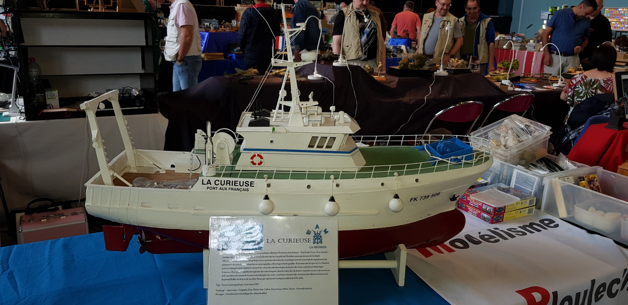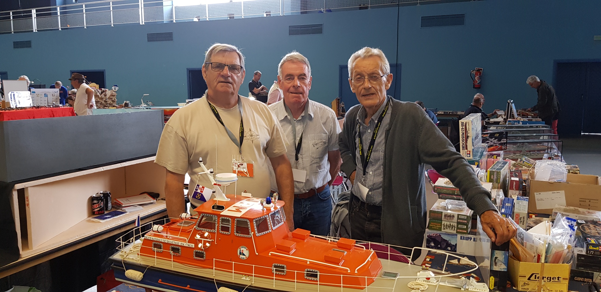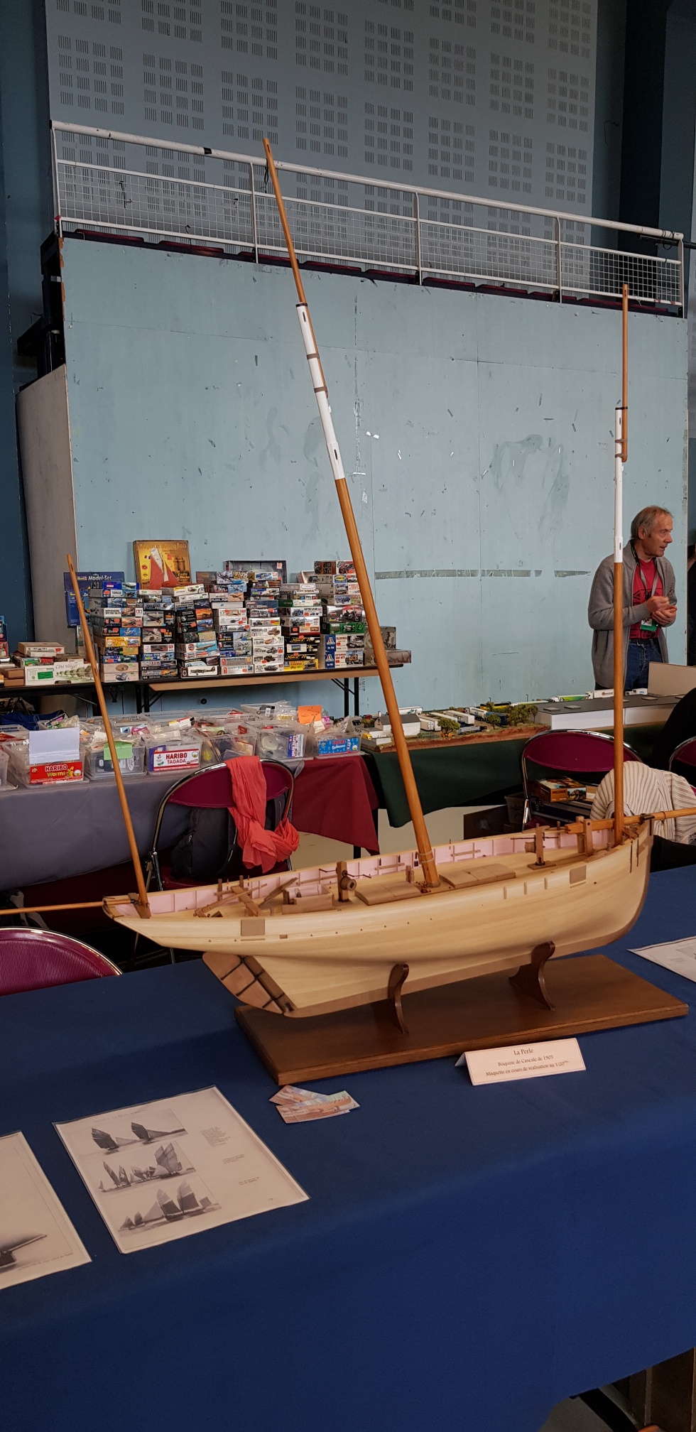 Samedi apm, déballage CAMPI : nappes, maquettes et pour finir le coin vente. Avant tout, le petit café à déguster au bar, offert par nos amis du GMC 22. Accueil toujours des plus sympa ! Retour au stand où nous attendons le client. Une salle bien garnie tant en maquettes exposées qu’en ventes d’occasions.