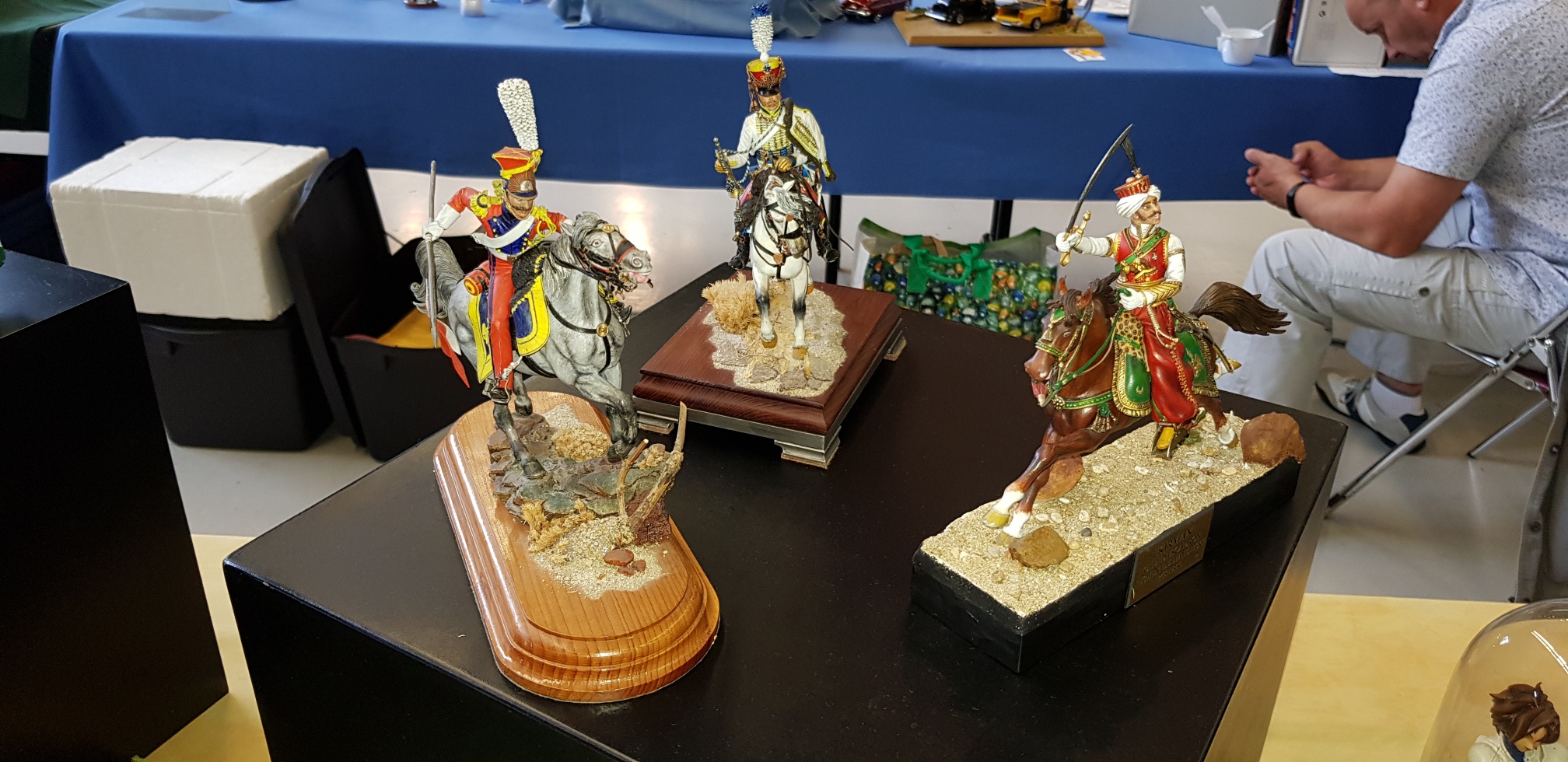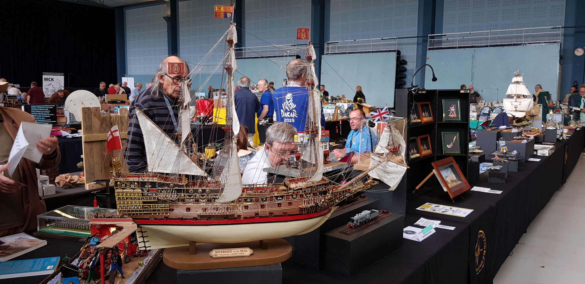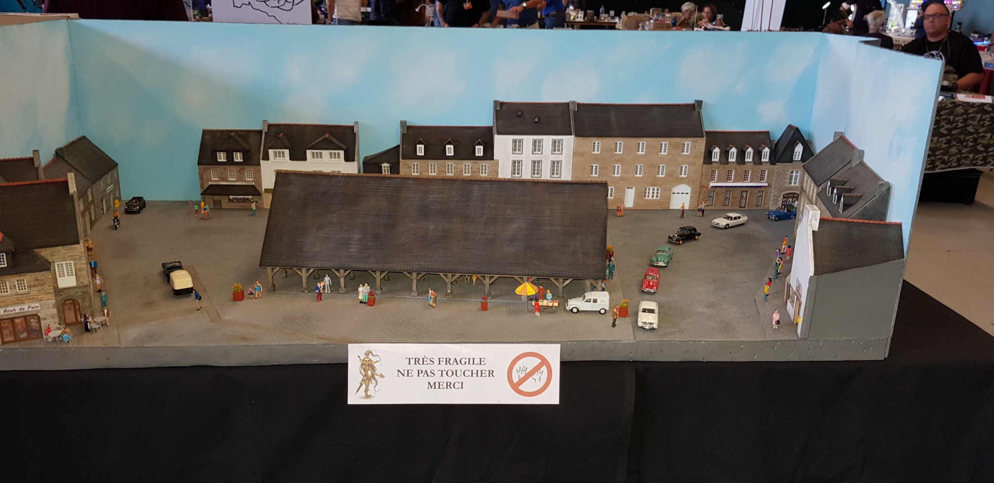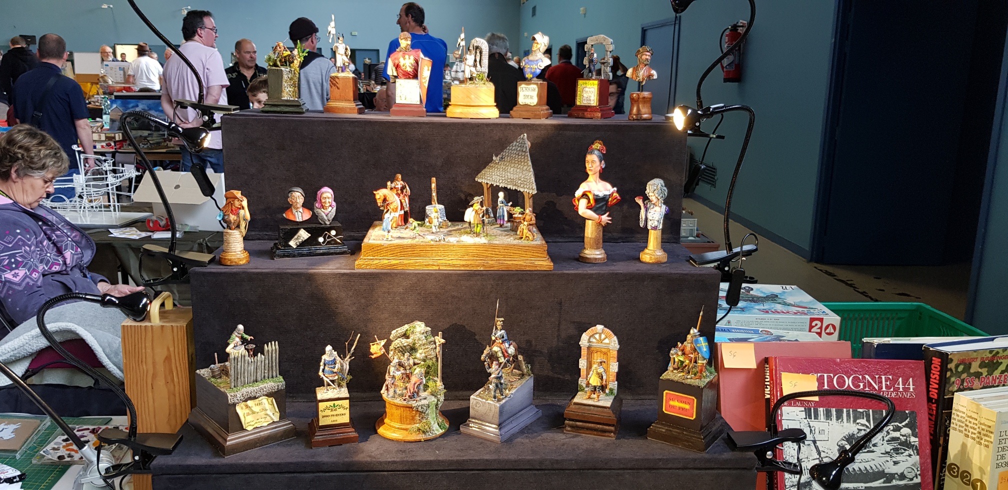 Samedi apm, déballage CAMPI : nappes, maquettes et pour finir le coin vente. Avant tout, le petit café à déguster au bar, offert par nos amis du GMC 22. Accueil toujours des plus sympa ! Retour au stand où nous attendons le client. Une salle bien garnie tant en maquettes exposées qu’en ventes d’occasions.