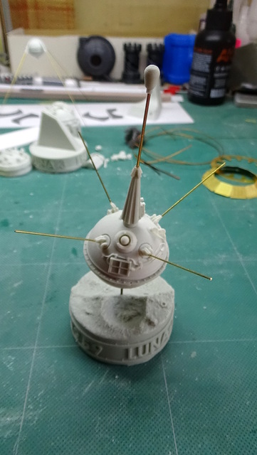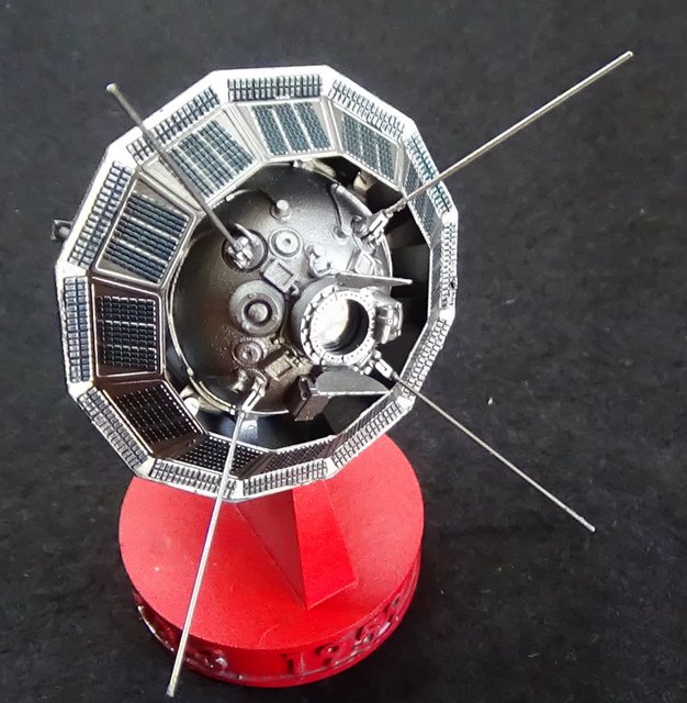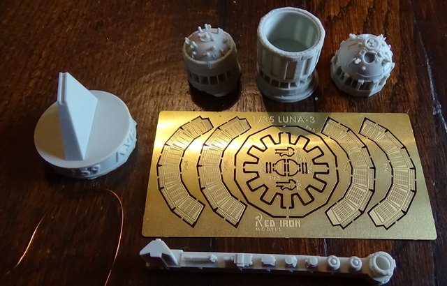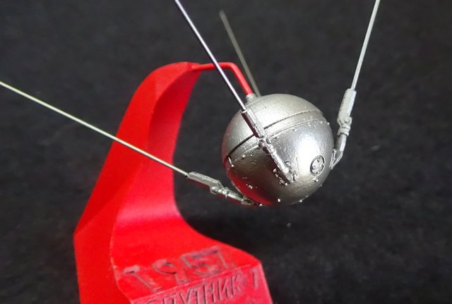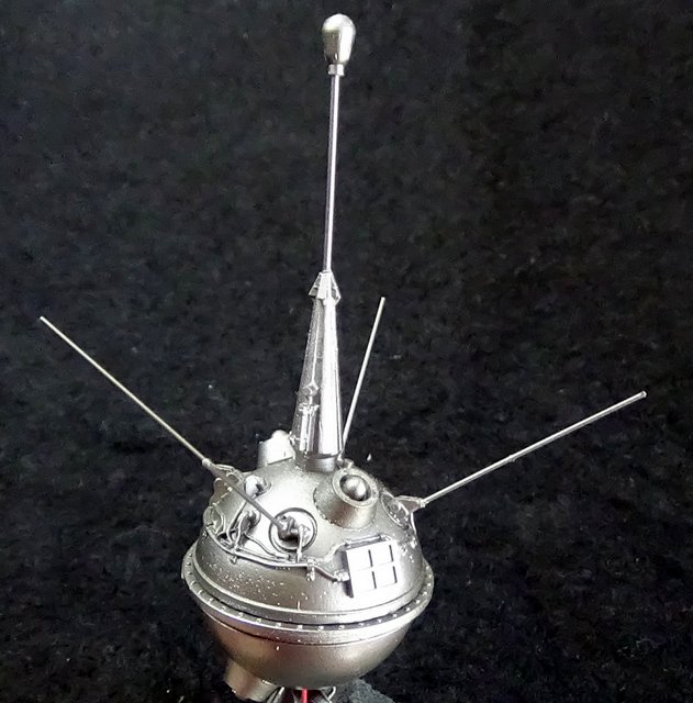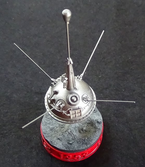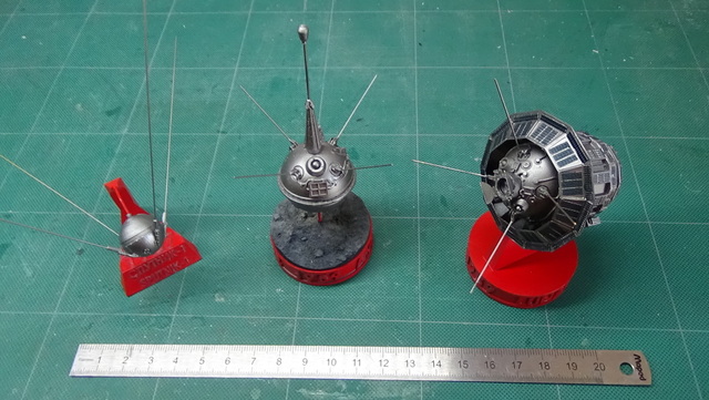 Trois petites maquettes au 35e en résine de l’artisan russe Red Iron Models : Sputnik 1, Luna 2 et Luna 3.