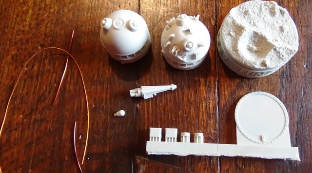 Trois jolis petits kits tout simples et très bien conçus et moulés. chaque vaisseau vient avec un support « à la soviétique » et quelques longueurs de fil de cuivre pour les antennes.