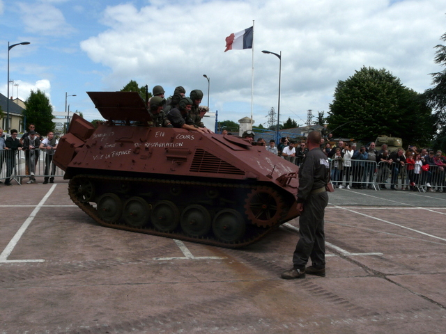 Départ : Le vendredi à 14 heures, rassemblement chez Pierrot, (ce qui nous rapproche déjà fortement de SAUMUR). Jean No, Capitaine du véhicule est maître d’œuvre pour le chargement, déjà ça râle pour le cageot. Moi je ne dis rien, mais dans ma tête, une phrase répétitive me harcèle : «je l’avais bien dit, que des caisses !». Route sans encombre en longeant la tempête Miguel. Arrivés à SAUMUR, le téléphone-GPS nous lâche, plus de batterie. Et dans ma tête encore une petite pensée pour mon bon vieux GPS. Pas de panique, puisque nous allons à l’hôtel de la gare, il suffit donc de trouver la gare. Je ne sais pas pourquoi, sûrement un petit coup de frein intempestif, propulse un V1 dans le cageot à Thiébaud. Le passager arrière, responsable du chargement, s’écrie : «ah lalalalala, c’est tout pété !». Comme avec Pierrot on se sait jamais si c’est du lard ou du cochon, et bien là, c’était sérieux. Enfin un peu de boulot pour Jean No pour occuper sa soirée sereinement. Pause bien méritée à notre hébergement qui nous conseille le resto d’à côté. Bien mal nous en a pris, nous avons eu affaire à une bande d’amateurs qui nous gâchent tout de même le repas, (demander explications à Jean No quand vous le verrez). Dodo. Petit dèj à 8 heures, brosser les dents et direction le musée. Jean No a remis en état l’explosion du cageot, on y voit que du feu.