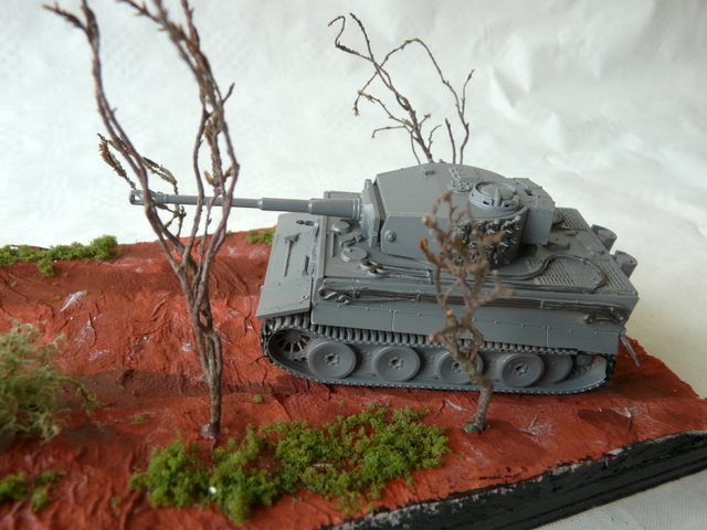 I started modeling a few months ago, and for my first diorama I had the idea to represent a meeting between a Tiger and a Sherman Firefly. A refuelling jeep followed him to give him fuel. The confrontation being inevitable, the gunners prepared for the fight. But at the moment of firing, a German gunner announces that the gun is jammed and forces his tank commander to announce the immediate withdrawal. The Sherman can refuel and the jeep continue its work in other units.