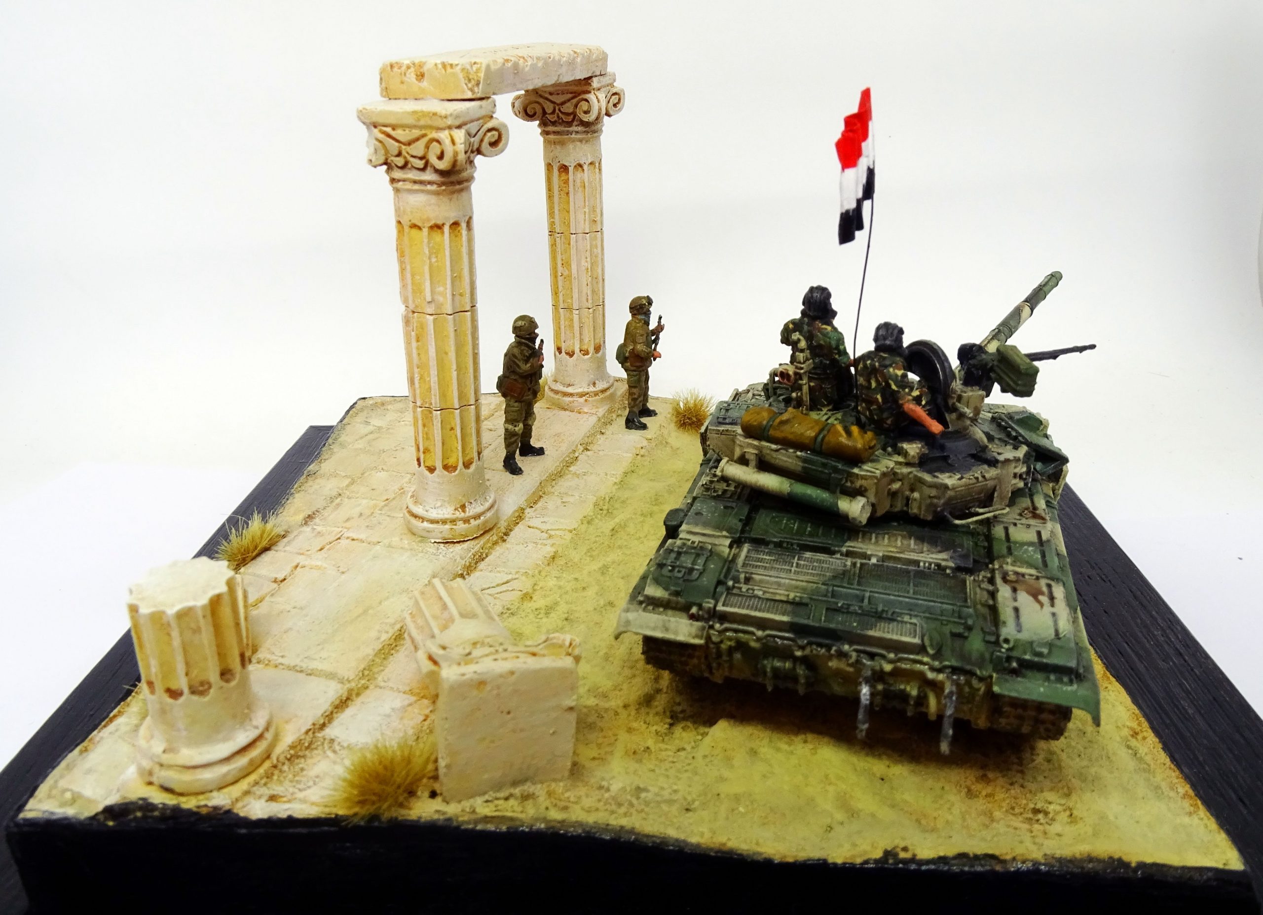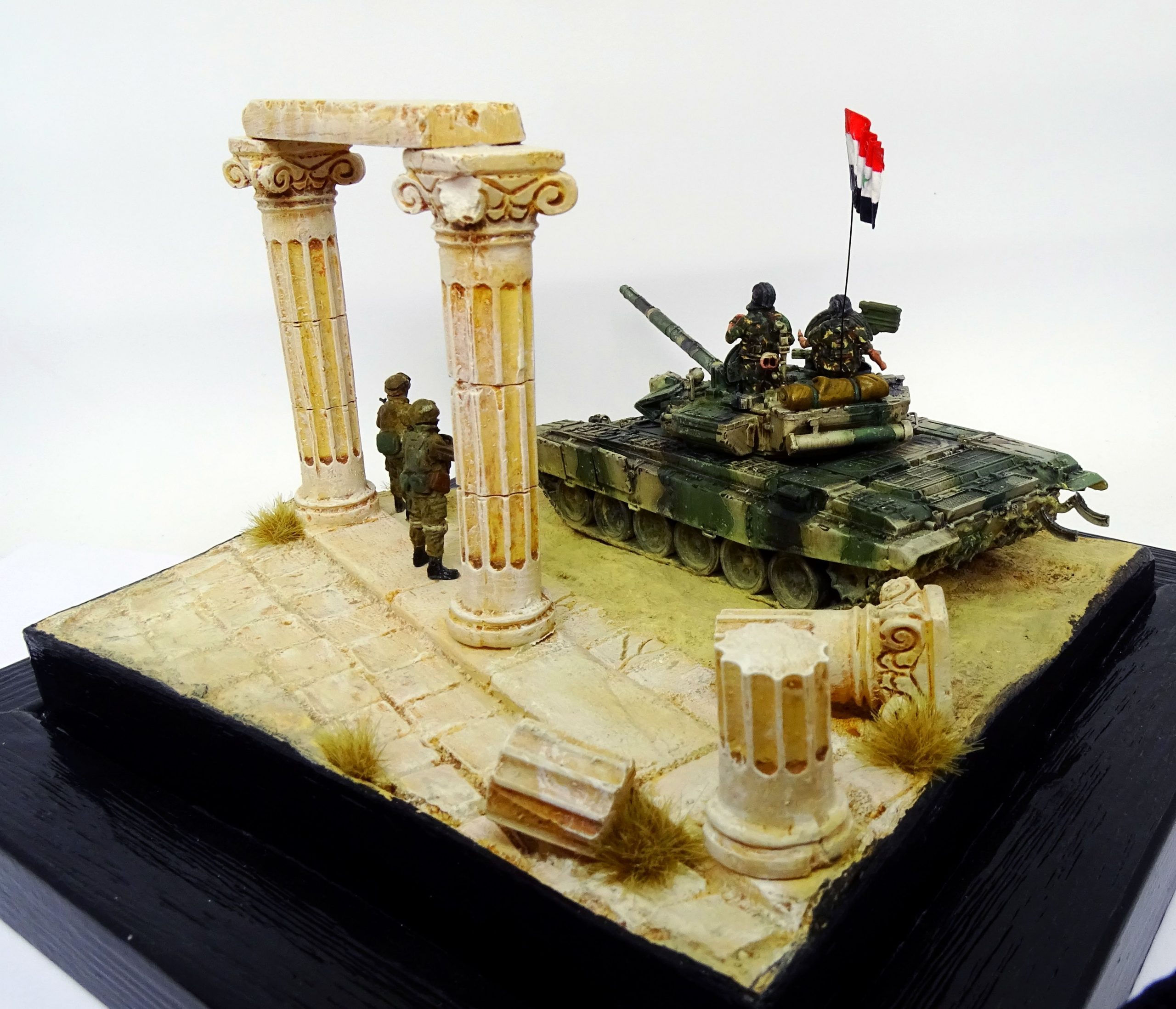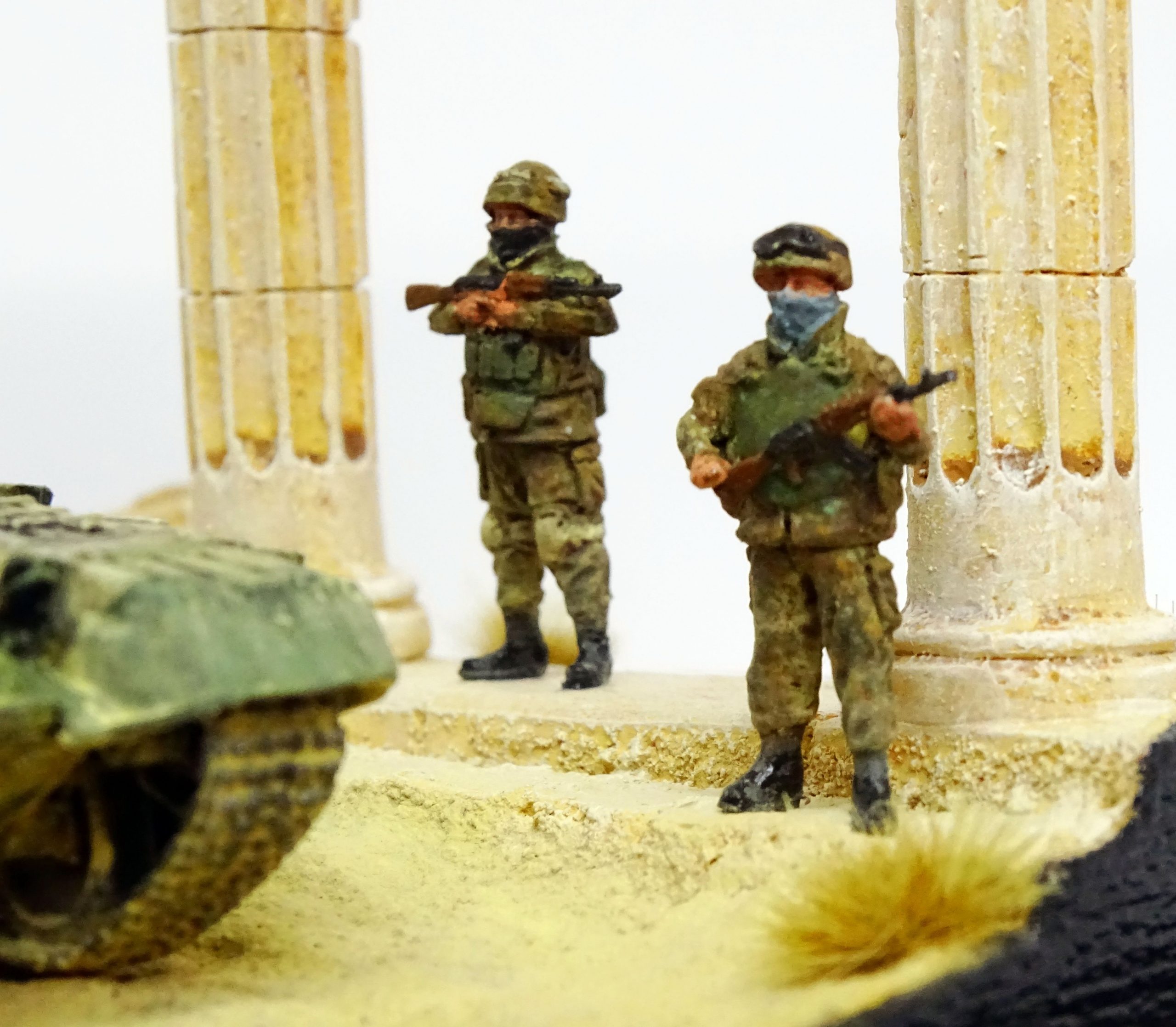 T 90 A Syrien (acheté aux russes ) lors de la reprise de la ville de Palmyre ,accompagné de l’infanterie russe .