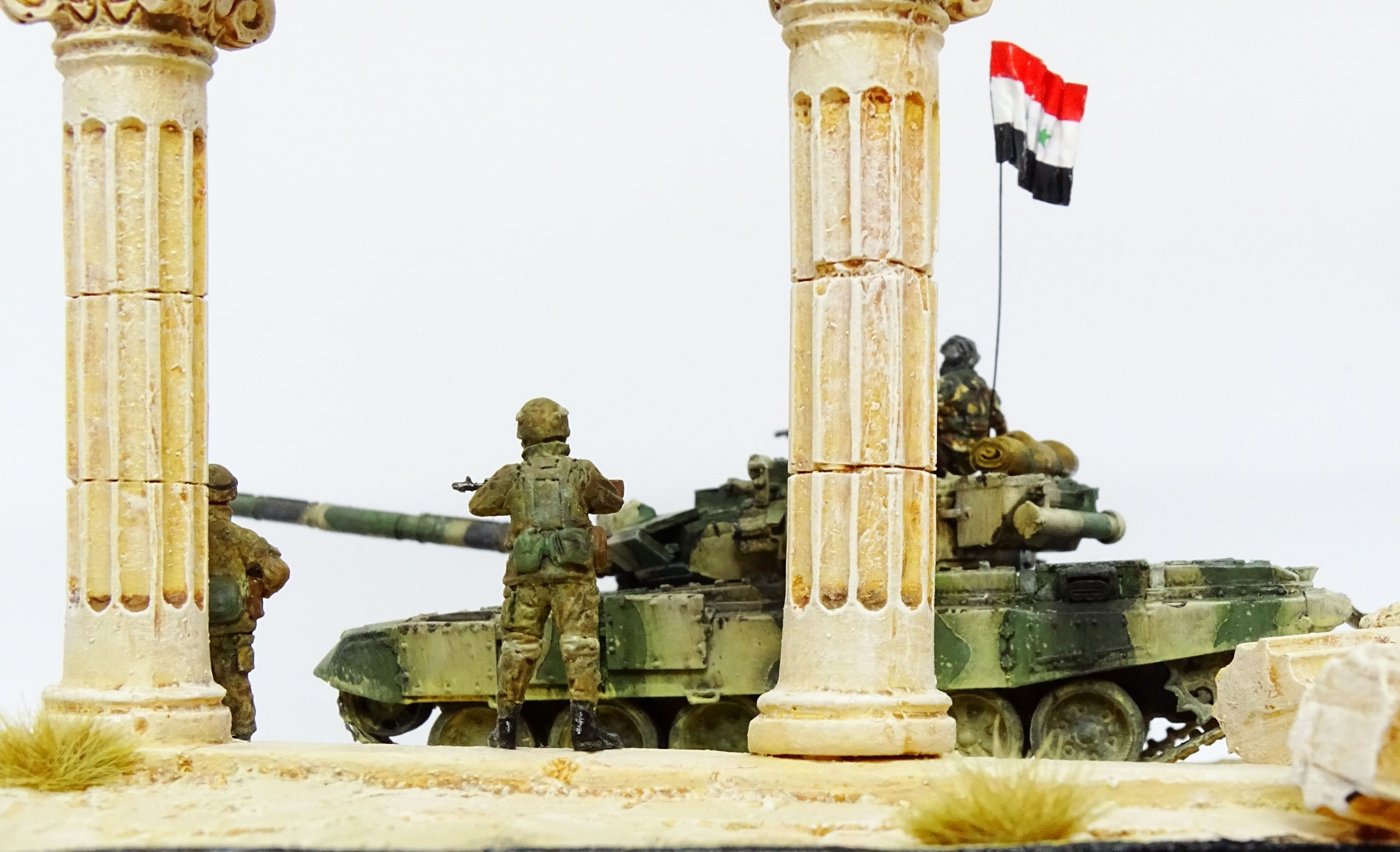 T 90 A  Syrien (acheté aux russes )  lors de la reprise de la ville de Palmyre ,accompagné de l’infanterie russe .