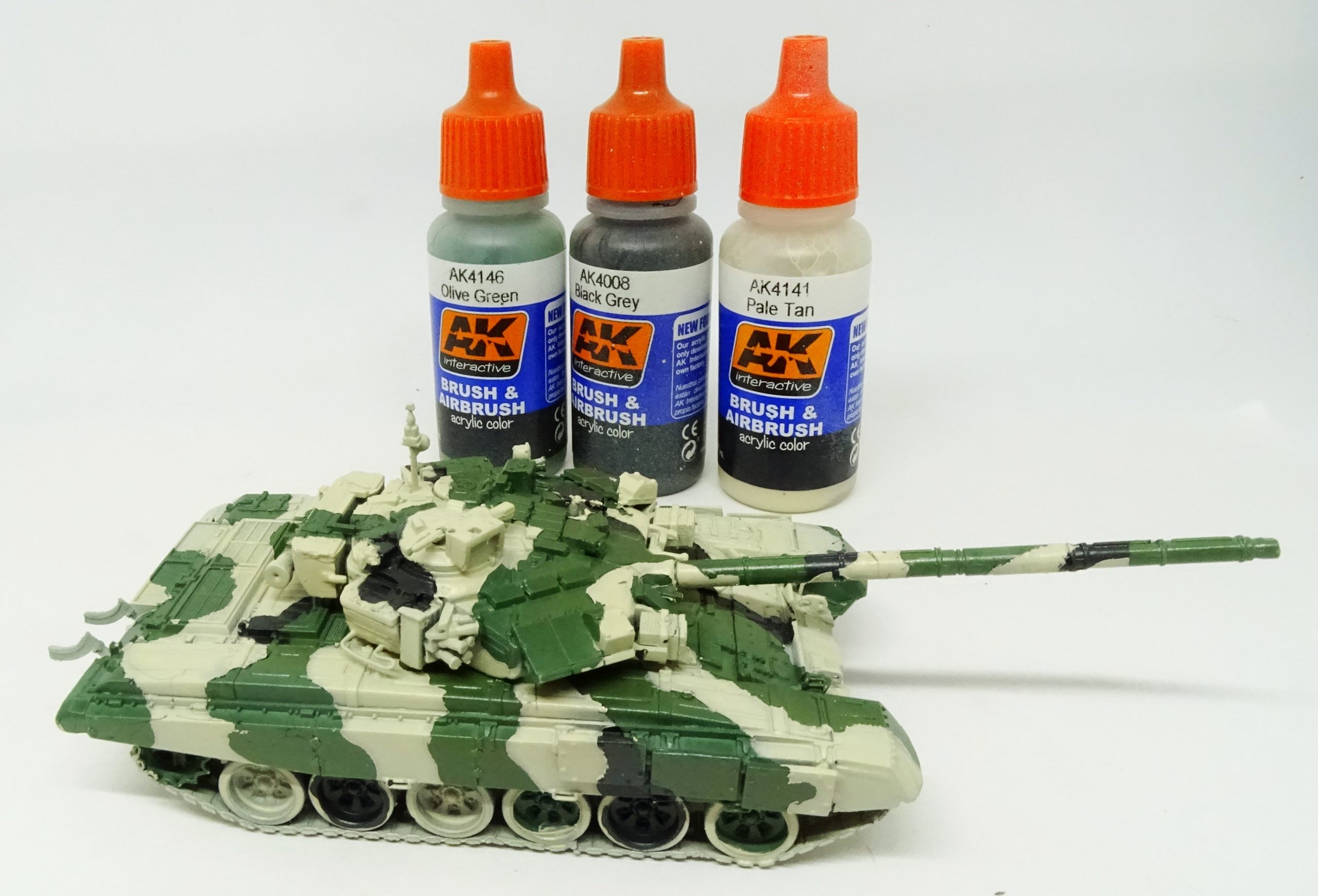 J’ai utilisé les peintures acryliques Ak et du boudin noir euh Masking putty , un produit très bien !