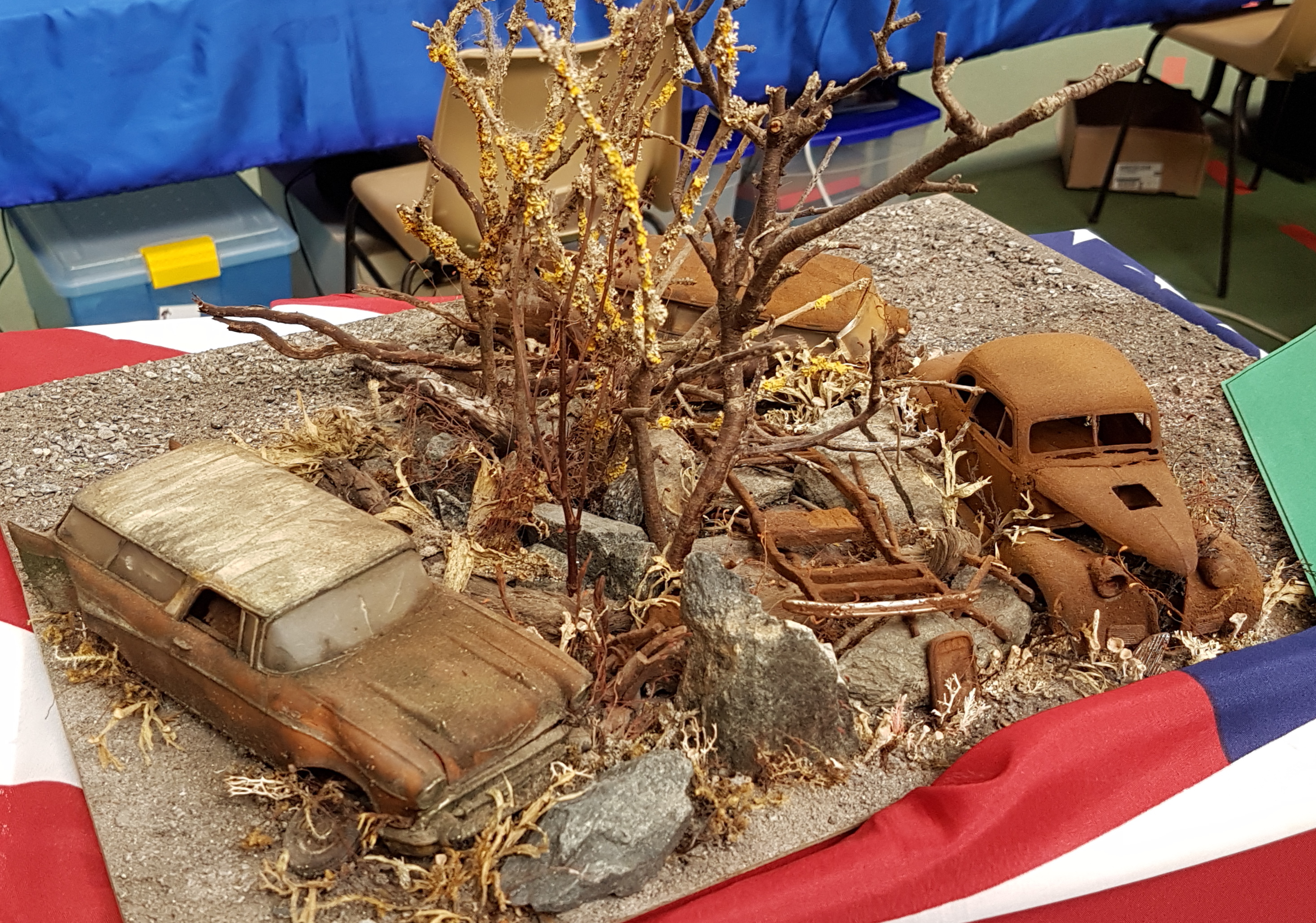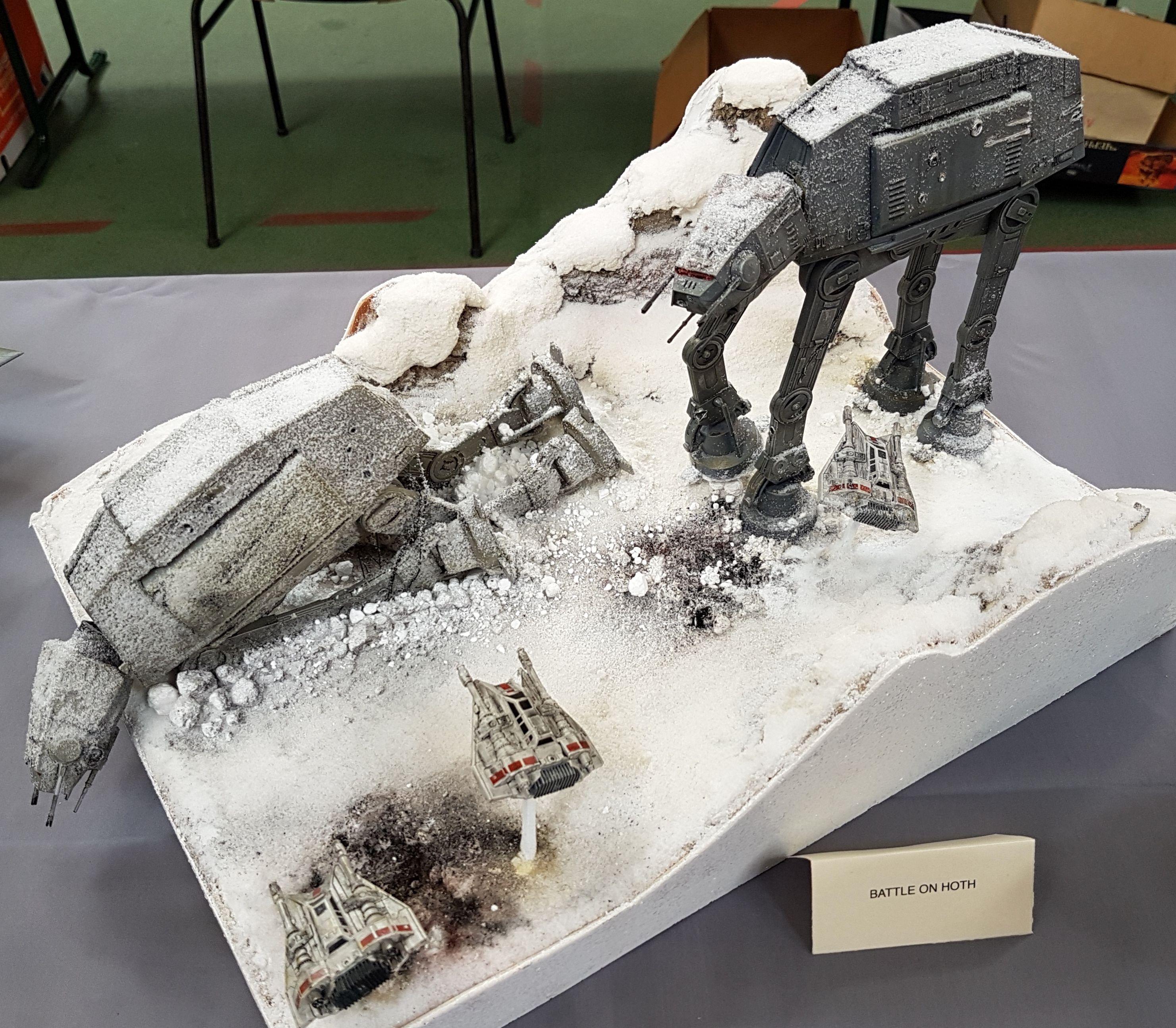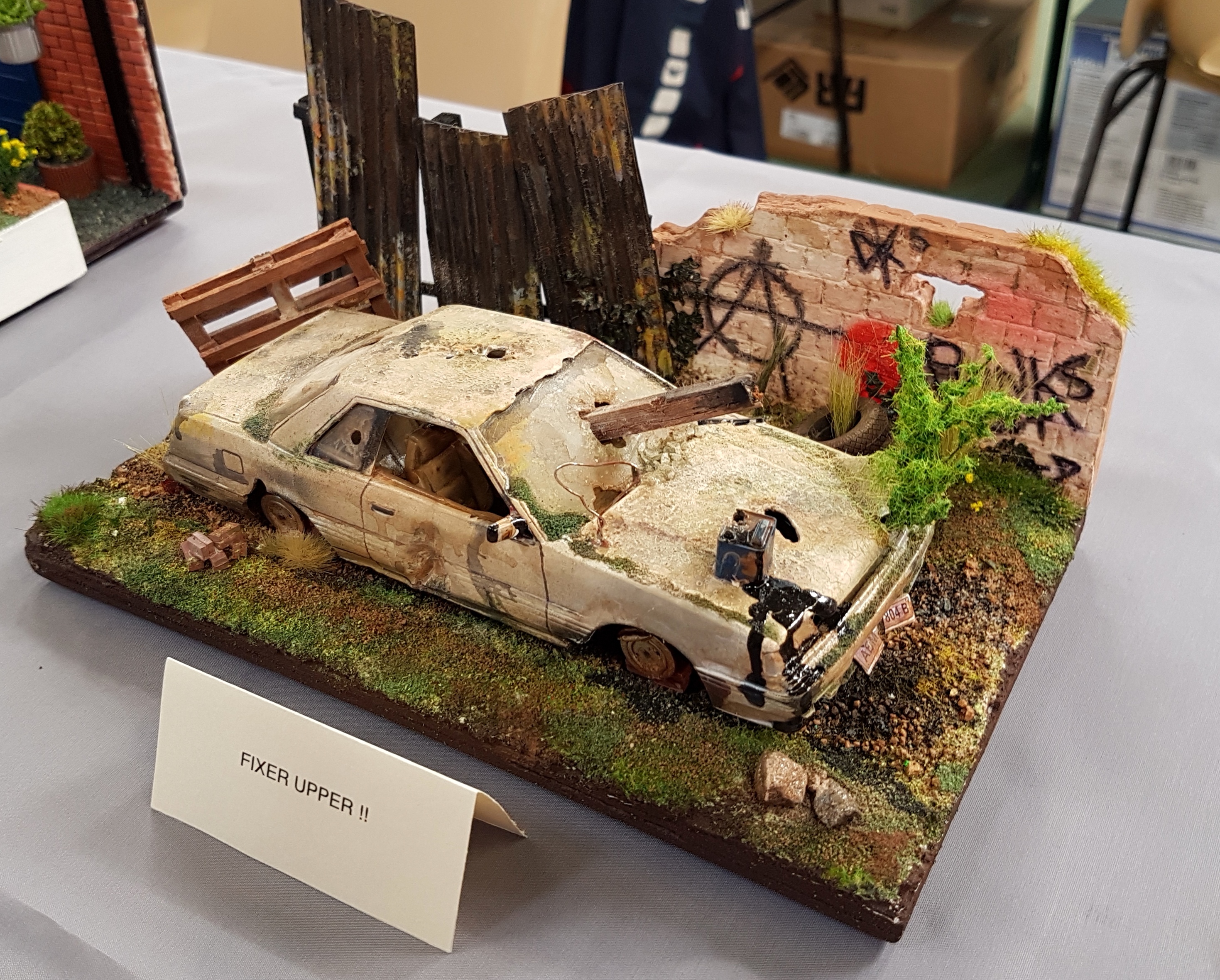 Après midi des plus sympas ! Quelques demandeurs de dossiers pour notre CAMPIE EXPO 2018 et avec quelques réservations en retour. Épreuve sportive organisée par nos amis. 5 lancers au panier de basket et on comptabilise les points, trois lancers sur 5 réussis par Pierrot qui n’en revient pas lui même, meilleur score avec 9 points. La grosse partie de rigolade, sympa tout cela ! Fréquentation assez calme en ce samedi après midi, pourtant la météo se prêtait à ce genre de visite. Peut être mieux le dimanche ? Rendez vous pris par les campistes pour dimanche 11 heures au stand. Dimanche, 11 heures, présence de tous les campistes. Thiebaud, reprend son montage, Yann perfectionne son minotaure, Pierrot ne fait toujours rien et nos deux marins se rendent au bassin. A midi, pause déjeuner. Après midi du dimanche bien tranquille entre démo de peinture au stand, navigation pour d’autres, ordinateur pour un autre. Décoration d’ une figurine SF. Très joli coup de pinceaux. Même notre expert figurine Yann trouvait qu’il avait de l’avenir. Nous entendions souvent résonner le sifflet de la chaloupe de l’ami Alain, même Pierrot s’était mis à peindre un GMC. Vers 17 heures, résultat de la tombola : deux lots pour Claude , (une maquette d’avion et un train) et un lot pour Pierrot, un wagon qui pourra peut être agrémenter le futur réseau CAMPI. Je n’ai pas parlé de l’accueil, est-il d’ailleurs nécessaire d’en parler : toujours aussi sympa, on ne se prend pas la tête, on est là pour rigoler et nous avons rigoler. Remerciements donc à toute l’équipe de l’AMCL.
