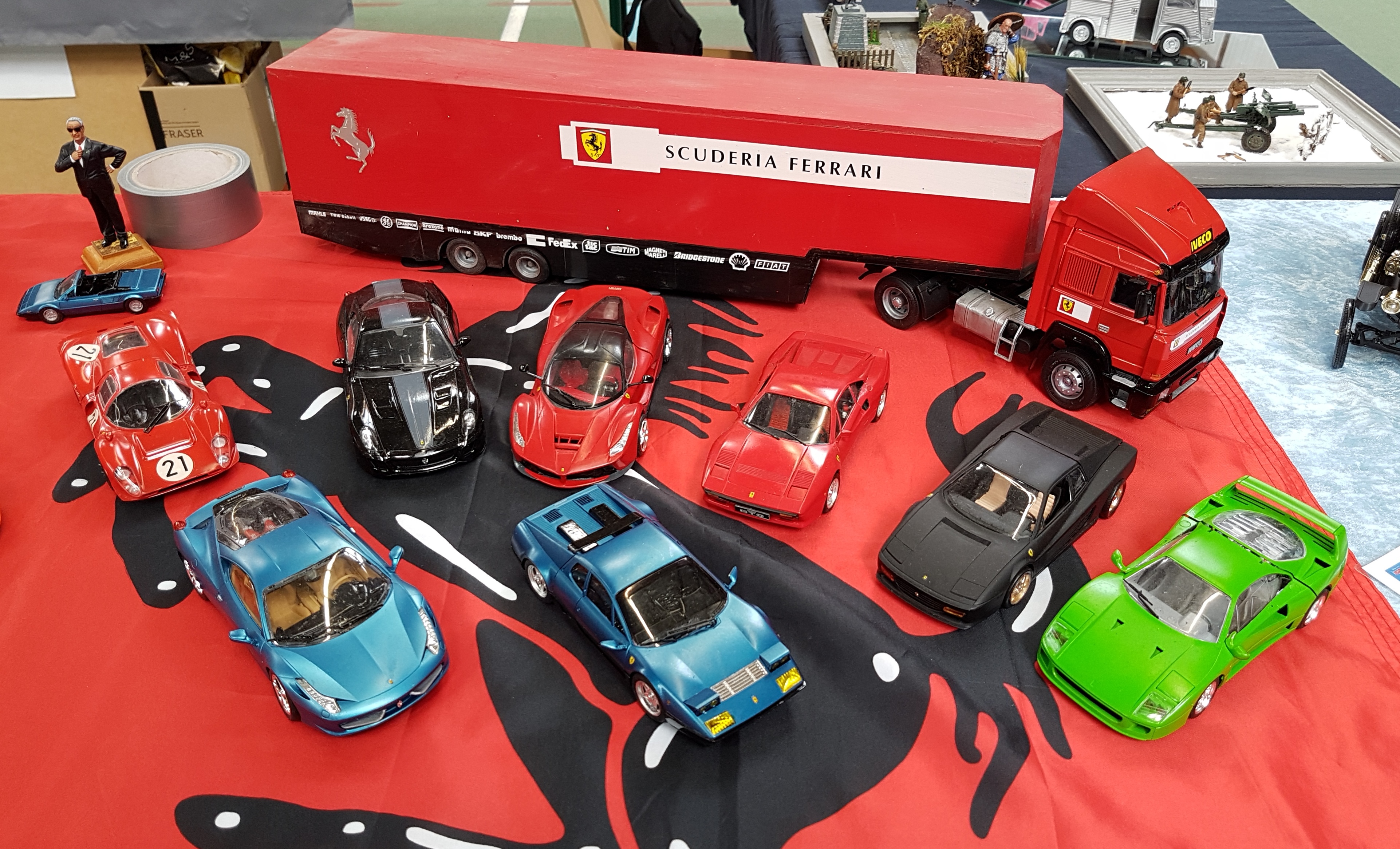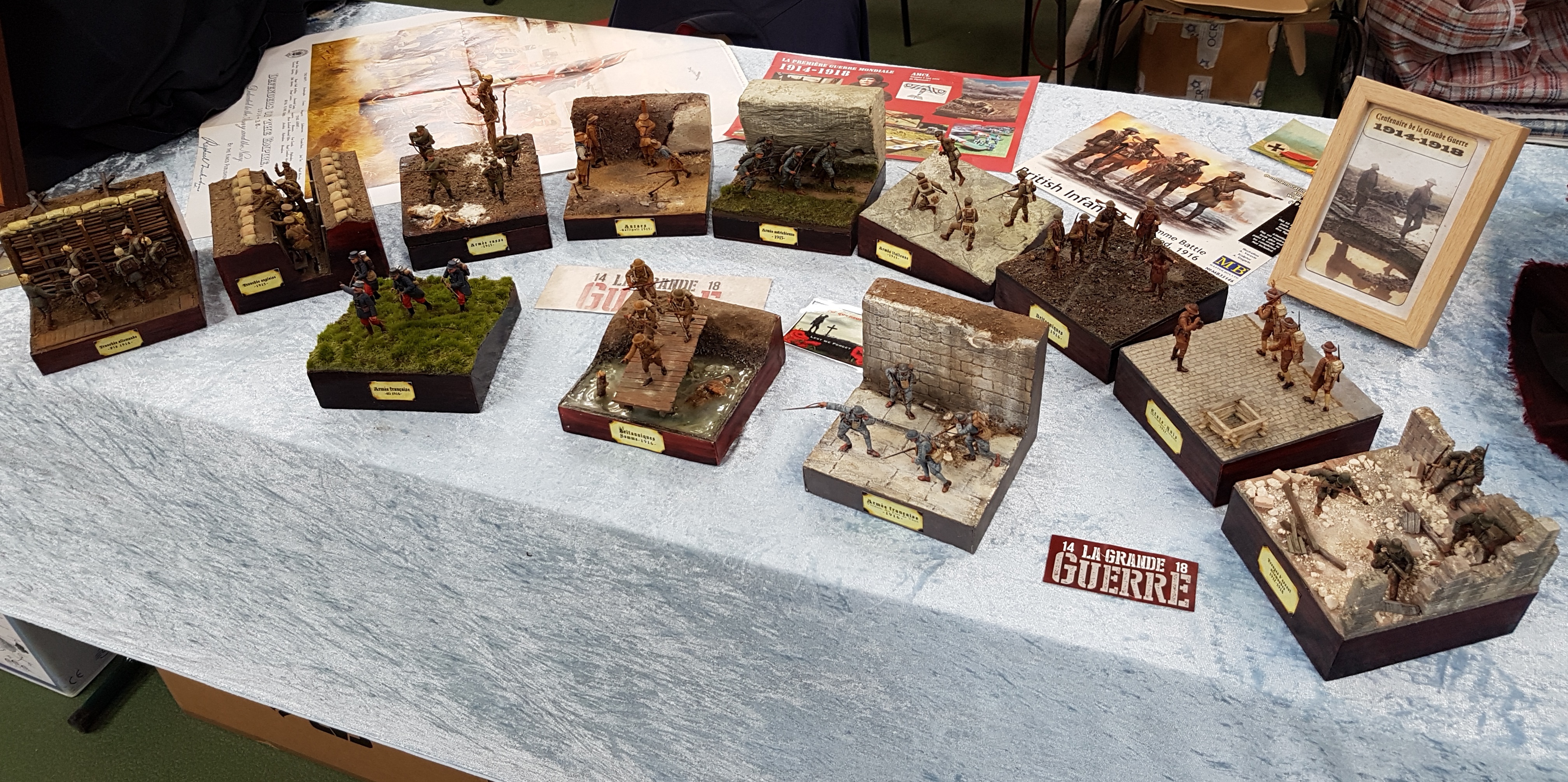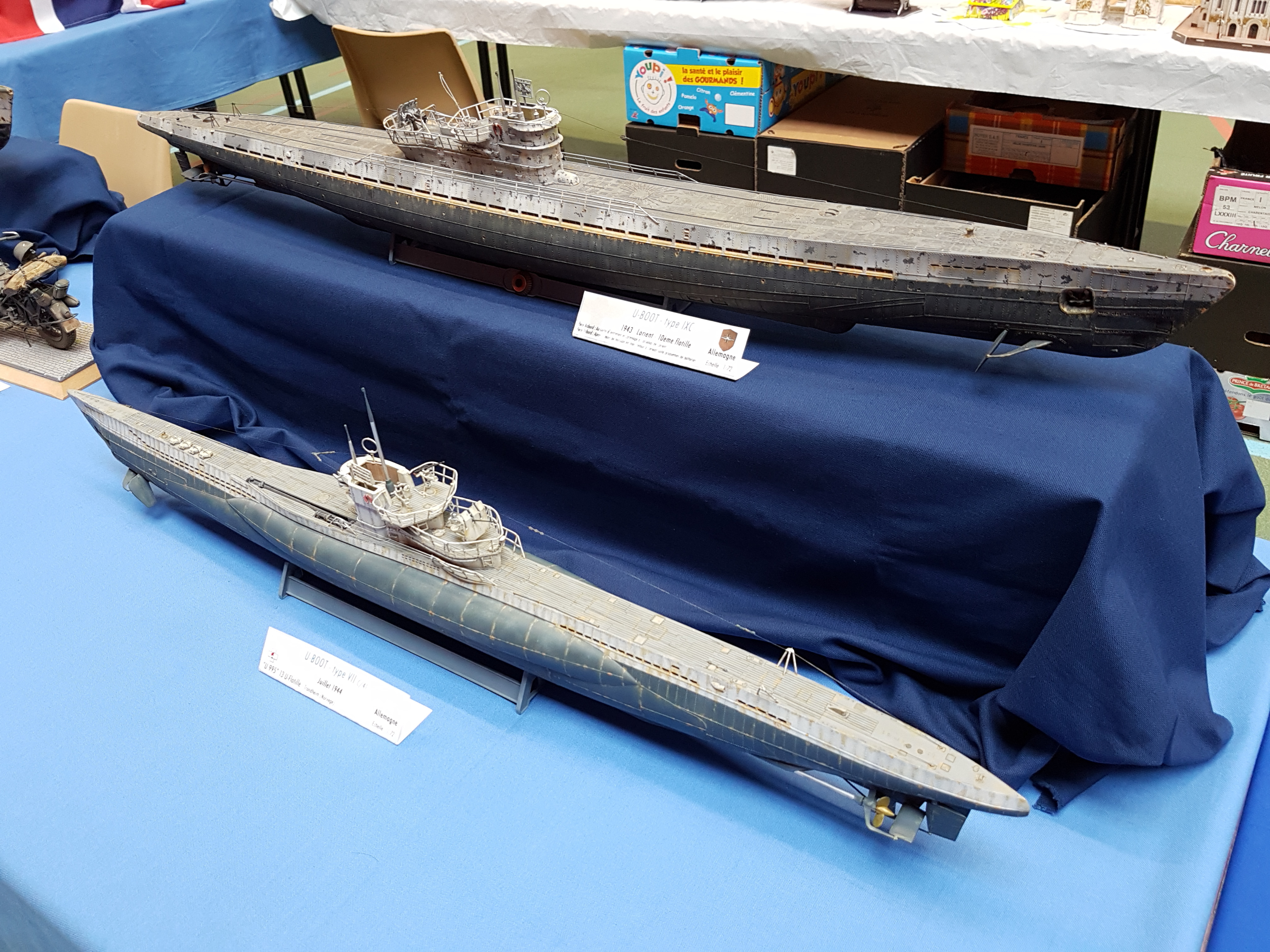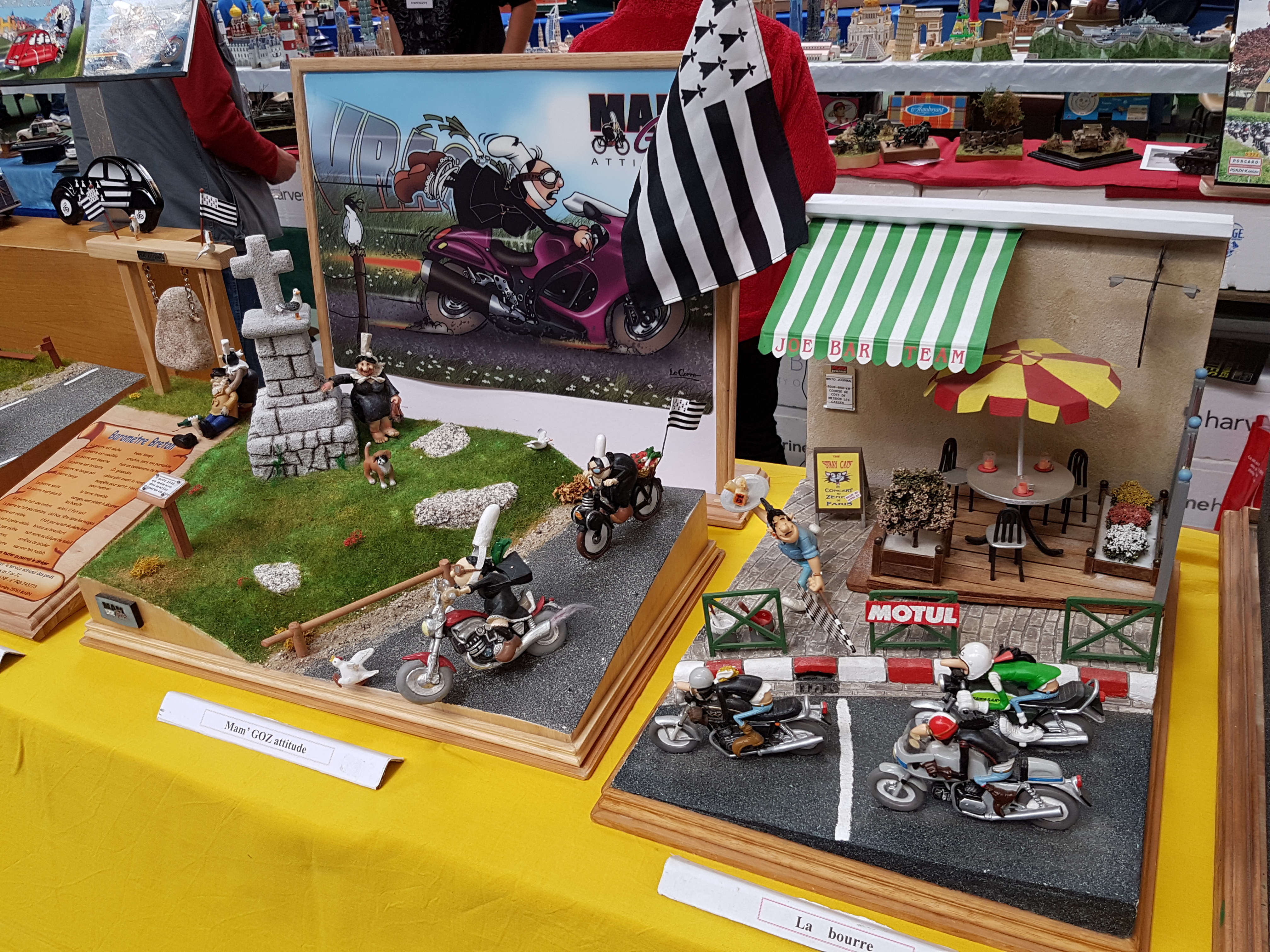 Réservation donc de 10 mètres de stand. Le samedi matin, rendez vous des campistes à 10 h. Salut à toute l’équipe organisatrice, repérage du stand et on installe. Notre ami Claude, toujours fidèle pose ses deux bateaux RC, (un porte avions américains au 200 ème et une vedette SNSM), Alain, (C), sa splendide chaloupe vapeur qui commence à se faire une réputation sur le circuit. Voilà pour le RC. L’ami Pierrot présente un peu de bateaux statiques, (marine Française surtout), le coin bateau opérationnel ! L’ami Yann déballe la vitrine et y met ses figurines fantastiques. Une étagère vite construite avec des caisses à bateaux par les mains expertes de l’ami Franck et Pierrot peut y positionner ses deux caisses de figurines, ( toutes époque et toutes échelles). Stand CAMPI enfin prêt ! Dégustation du café- pain au chocolat offert par nos amis organisateurs. Petit tour de salle pour y saluer tous nos amis présents et inauguration du salon vers 11 h 30. Petit discours de l’ami Neil, Président de l’AMCL, quelques mots d’un représentant de la municipalité et TREFLEZ expo 2017 est lancée.