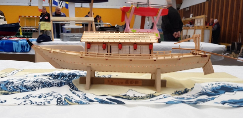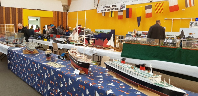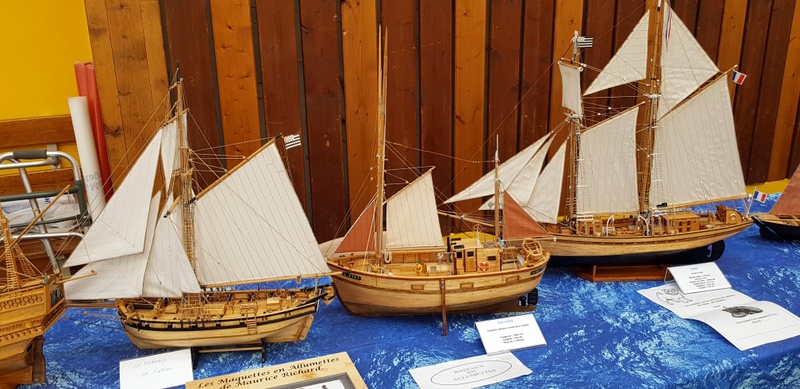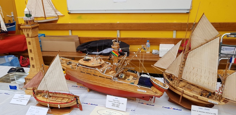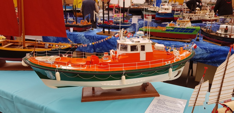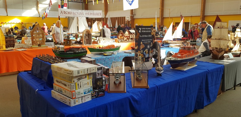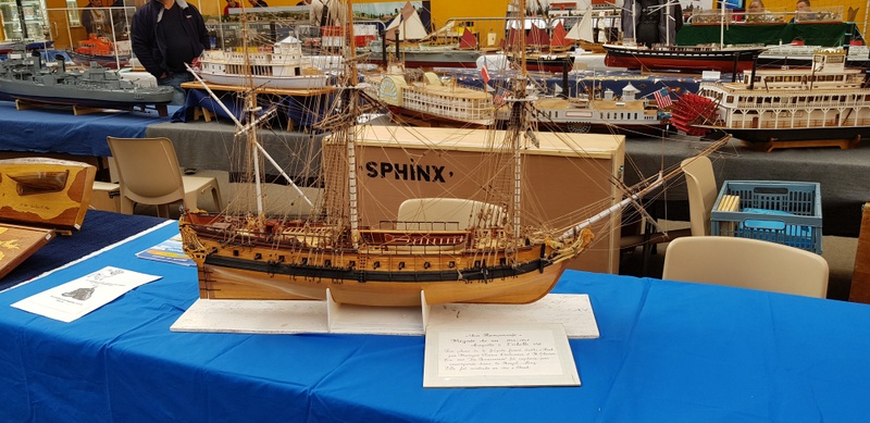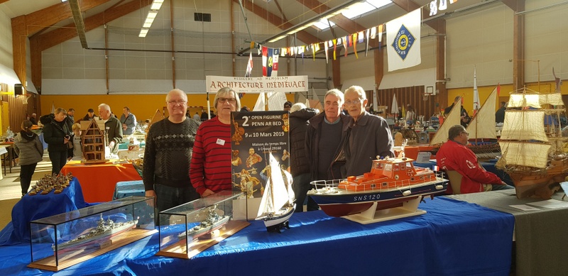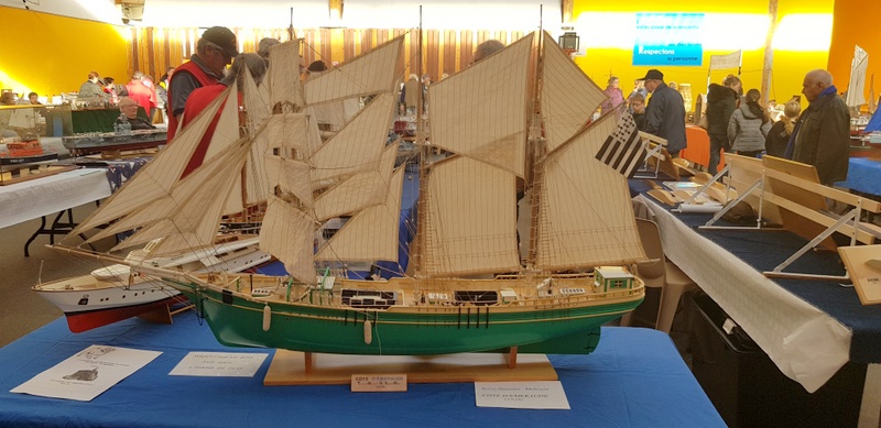 Suite des déplacements CAMPI avec un déplacement courte distance à TREGUNC, organisé par l’ATMB de notre ami Jean-Yves. 9 heures, le samedi matin, arrivée de l’ami Pierrot. Un salut à la table d’accueil : «Bonjour tout le monde, club CAMPI CROZON !». Et une charmante dame de me répondre : «vous venez donc en visiteur à notre salon !». Un campiste un peu désarmé devant une telle réponse et de préciser que la réservation avait été faite en temps et en heure. Un coup d’œil au grand plan de salle étalé sur la table. Aucune trace de l’inscription, de plus en plus bizarre… Épluchage minutieux des dossiers, toujours pas de club CAMPI. Qu’à cela ne tienne, on rentre et là, très belle réaction de nos amis de l’ATMB : «on va serrer nos pièces présentées et on va trouver de quoi vous caser !». Aussitôt dit, aussitôt fait : 6 m de tables dégagées pour CAMPI ! Arrivée de l’ami Gilbert GARIN nous signalant qu’il avait dû «étaler» comme on dit dans le jargon maquettiste suite au désistement d’un exposant. Je peux vous donner deux mètres et voilà CAMPI avec ses huit mètres réservés. Que voulez-vous de mieux ? Cette charmante dame à l’accueil pensait que nous étions sur QUIMPER en expo car il y avait une manifestation de ce genre, (note du webmaster : Campi ne laisse jamais tomber les copains !). Nous avons toujours été fidèle au salon organisé par l’ATMB, ce n’est pas maintenant que nous allons leur faire faux bond. Installation du stand CAMPI, bateaux bois, (Michel, Claude et Guy) sur 6 mètres et figurines et bateaux sous vitrines plus le coin de vente pour Pierrot. Un salon 2018 plus axé sur le bateau. Un peu de train bien sûr. Un bassin dans la salle où se déroulaient de très belles démonstrations de bateaux RC avec des commentaires tout à fait appropriés. Très joli stand montrant des bateaux anciens, ( XVII et XVIII siècles) reconstitués d’après plan. Du travail d’artiste. Entre autre une splendide chaumière de Kerascoet de 1781.