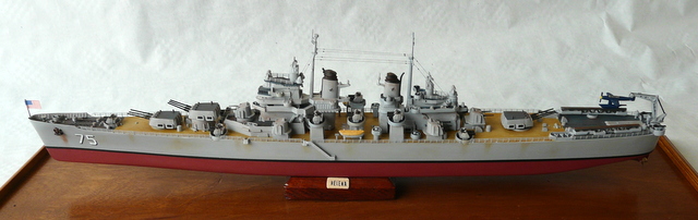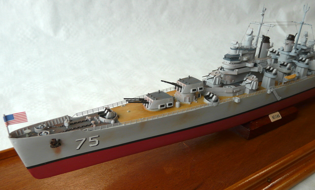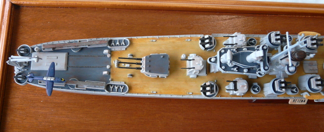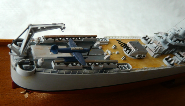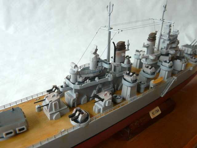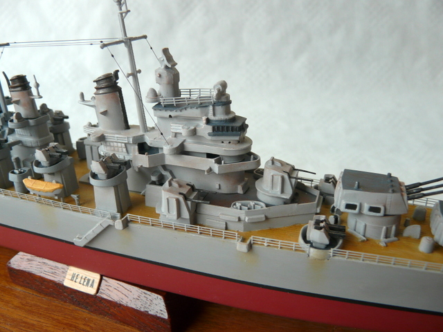La seule amélioration apportée est la pause de nouvelles rambardes en photo-découpe. Toujours fidèle aux rambardes au 1/400 de l’ARSENAL (les anciennes comme je les aime, faciles à poser). S’il lit cet article, un grand merci encore à mon ami Jacques ( il se reconnaîtra !). Comme ce navire a quand même été opérationnel, un peu de patine s’imposait.