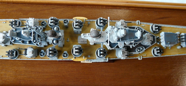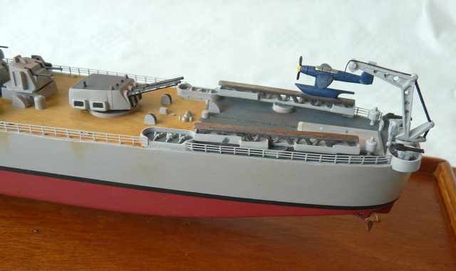 The only improvement made is the pause of new railings in photo-cut. Always faithful to the railings at the 1/400 of the ARSENAL (the old ones as I like them, easy to pose). If he reads this article, a big thank you again to my friend Jacques ( he will recognize himself!). Since this ship was still operational, a little patina was needed.